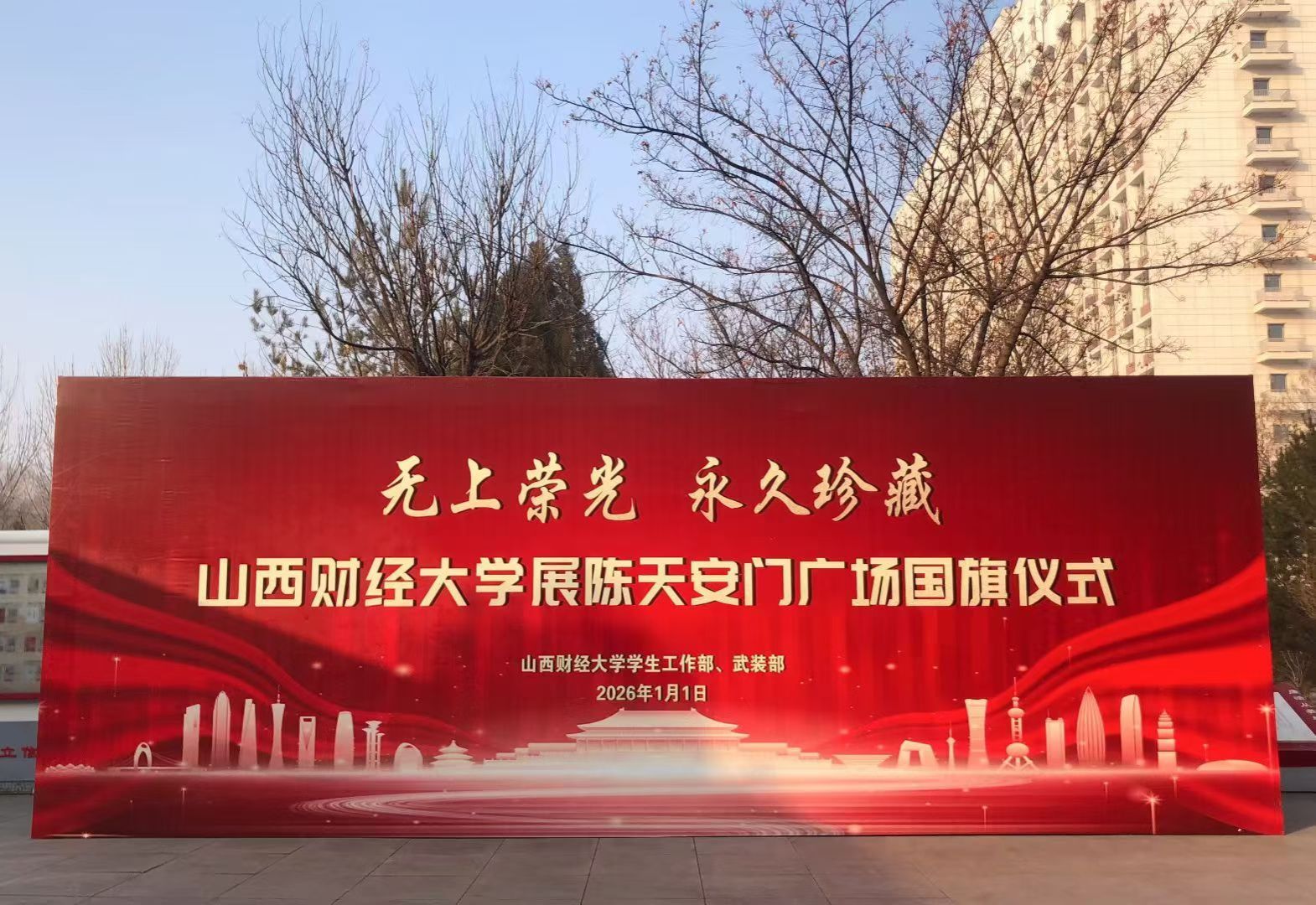 这面天安门国旗有着深刻的“财大印记”。2021年4月29日,在我校建校70周年华诞之日,它于清晨的天安门广场上空冉冉升起,将财大的生日与祖国的脉搏紧紧相连。它跨越山河,承载着国家的荣光与时代的记忆,铭刻着山财七十余载与祖国同呼吸、共命运的奋斗历程。我们将以此为契机,将今日的荣光与感动内化为守护与传承的责任,内化为明日进取的恒久动力,为我们的红色育人事业注入新的、强大的精神力量,引领广大学生以青春之我、奋斗之我,在求是创新的道路上勇毅前行,书写属于新时代山财人的卓越篇章。(学生工作部、武装部刘洁供稿)